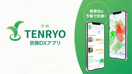 TENRYOは、AIが病害虫の発生を予測し、適切な農薬散布タイミングを知らせる「防除DXアプリ」です。キャベツ、ブロッコリー、ハクサイ、タマネギといった野菜のほか、柑橘類、水稲など13種に対応しています。
